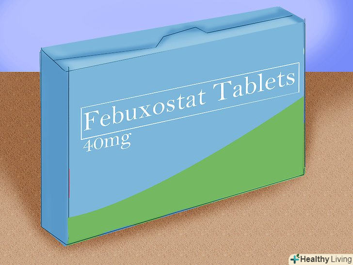 Приймайте алопуринол або фебуксостат.лікар може виписати вам алопуринол і фебуксостат. Ці препарати блокують вироблення сечової кислоти, приводячи до виникнення подагри. Лікар призначить ці препарати, якщо в рік у вас трапляється кілька нападів подагри або якщо ці напади дуже болючі.[3]- Фебуксостат може викликати зміни ферментів печінки. Алопуринол може викликати шкірний висип, анемію, а часом навіть посилити біль в суглобах.[4]