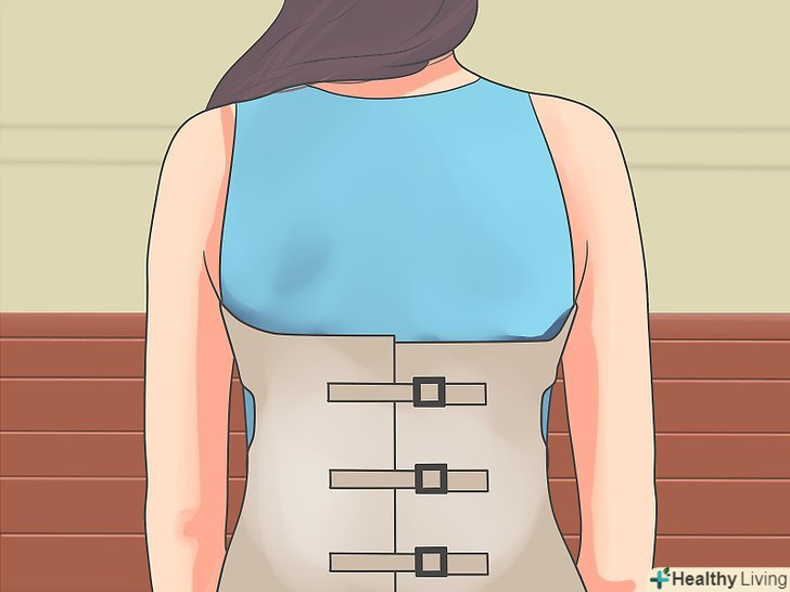Дізнайтеся, чи потрібен бандаж.бандажі-перший напрямок лікування викривлення, яке вважається помірним за розміром (25-40 градусів) або прогресуючим (яке збільшується більше, ніж передбачалося). Зазвичай його використовують, якщо кістки пацієнта ще ростуть, так як бандаж не зробить значущого ефекту при повністю розвиненому скелеті. Бандаж допомагає запобігти подальшому викривлення, але він не виправить його.[1]- Є два типи бандажів: м'які і тверді пластикові. Тип бандажа, який пропише лікар, залежить від багатьох факторів, таких, як положення і розмір викривлення, вік і рівень активності пацієнта. Стать пацієнта також важливий, так як у дівчаток ризик прогресування викривлення вище, ніж у хлопчиків.[2]