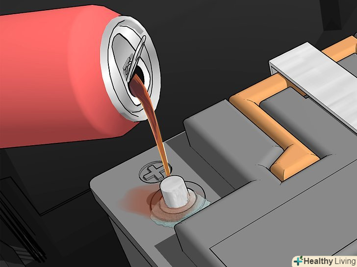 Полийте верх акумулятора колою — від центру до краю.повторіть те ж саме в напрямку іншого краю.