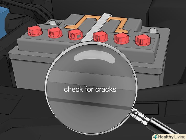 Уважно огляньте акумулятор з усіх боків на предмет тріщин і витоку електроліту.якщо ви знайдете що-небудь з вищевказаного, то батарею доведеться замінити.