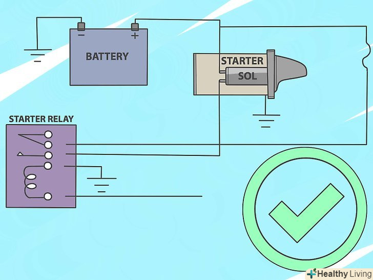 - Перш ніж змінювати стартер, переконайтеся, що саме в ньому проблема. За допомогою тестера цілісності ланцюга визначте чи надходить харчування в стартер.