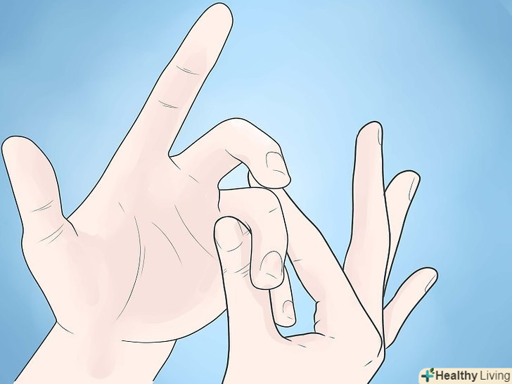 Синдром клацає пальця, або стенозуючий тендовагініт – це стан, при якому палець знаходиться в зігнутому положенні, і його важко випрямити. Ця недуга характеризується набряком сухожилля і сухожильного піхви, який обмежує рухливість пальця.[1] через це палець залишається в зігнутому положенні і при випрямленні видає клацання, як при натисканні на курок пістолета. При збільшенні недуги палець може назавжди залишитися в зігнутому положенні. Для того щоб дізнатися, чи є у вас синдром клацає пальця, почніть з кроку 1.