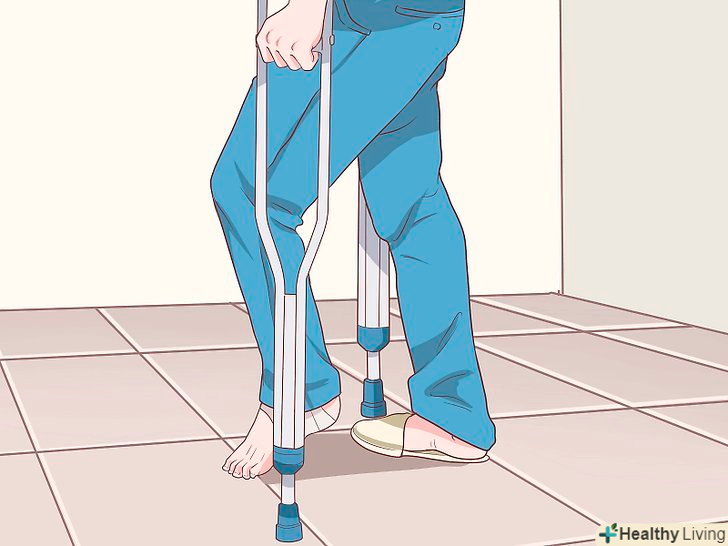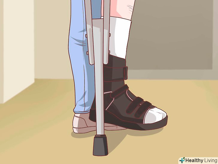 Навчіться обходитися з травмованою ногою.після операції ви будете ходити на милицях, в гіпсі або спеціального взуття. Залежно від виду операції, ваша рухливість може бути значно обмежена.- Лікар повідомить, коли можна буде ступати на ногу.[15]
