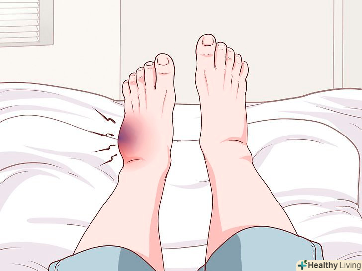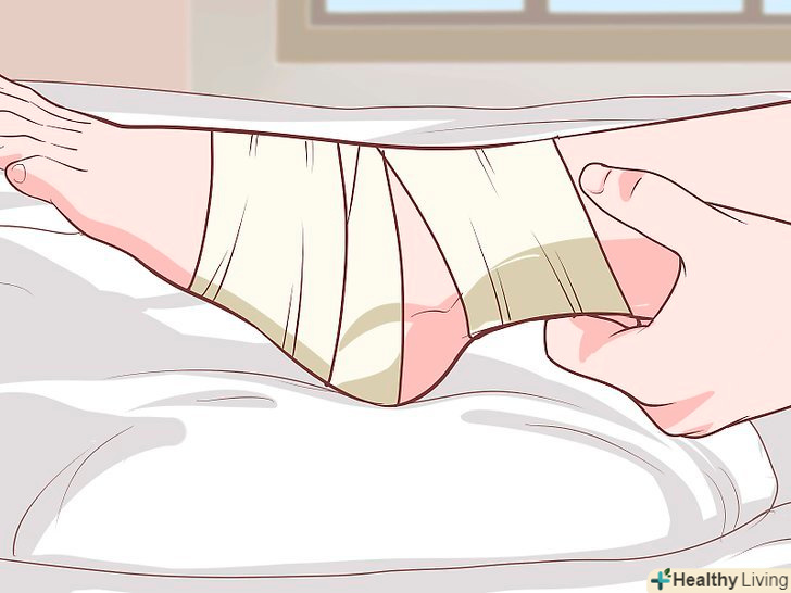 - Підніміть ступню, щоб зняти набряк. Постарайтеся тримати її приблизно на 15 сантиметрів вище рівня серця.[10]