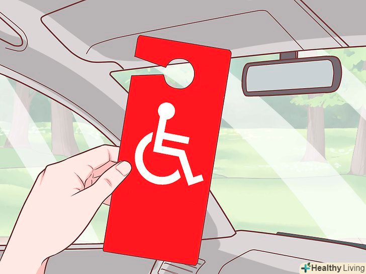 Наклейте на машину наклейку зі знаком інваліда.навіть коли ви знову сядете за кермо, вам все одно варто якомога менше ступати на ногу, і в цьому дуже корисною буде наклейка «інвалід». Рушайте в ДАІ, щоб вам зробили запис «дозволена установка знака «інвалід». Цей знак є лише тимчасовим заходом, але зате вам можна буде паркуватися ближче до входу в будівлю.[4]