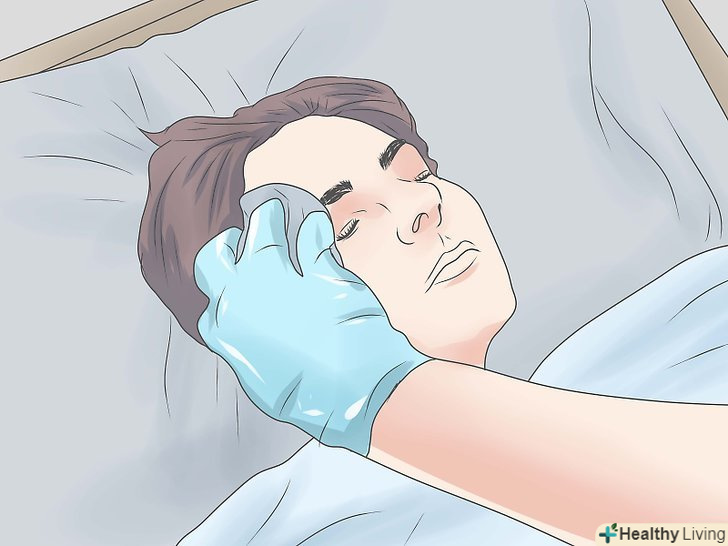 За допомогою м'якого мила і рушники або губки акуратно протріть обличчя, вуха і шию пацієнта.