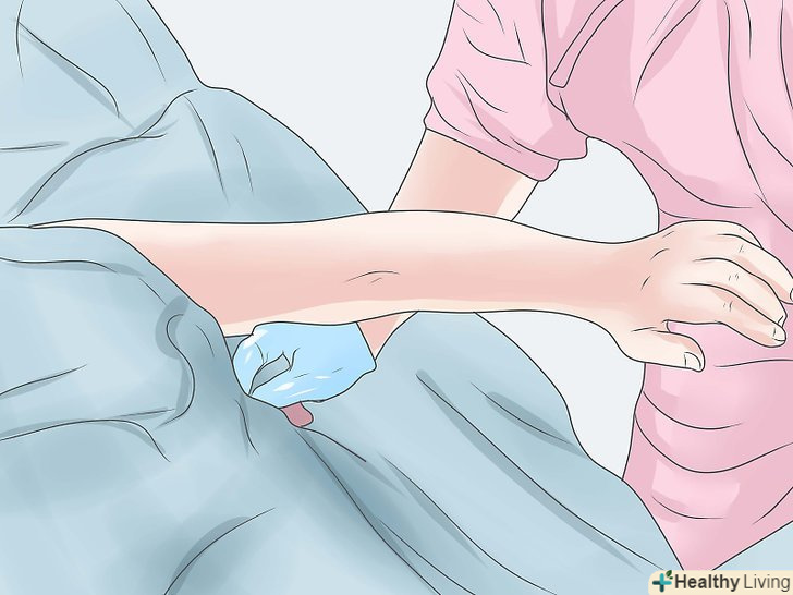 Відверніть ковдру, оголивши одну частину тіла пацієнта.покладіть рушник під відкриту руку пацієнта.