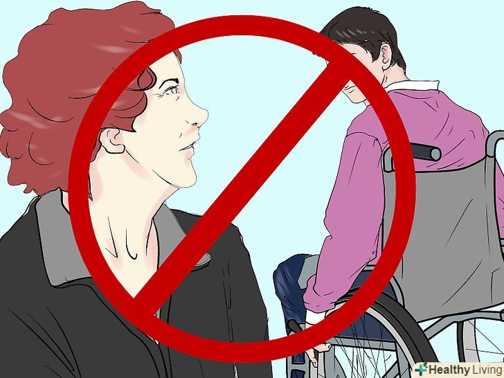 - Якщо будете звертатися до людини в інвалідному кріслі якось інакше, це може звучати грубо і поблажливо. Ось деякі слова і фрази, яких необхідно уникати в спілкуванні:[1]