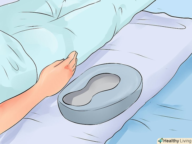 Переконайтеся в правильності розташування судна. попросіть пацієнта злегка розвести ноги в сторони, щоб перевірити, що підкладне судно знаходиться в правильному місці.- Необхідно просто переконатися в тому, що сідниці пацієнта цілком розташовуються на судні.