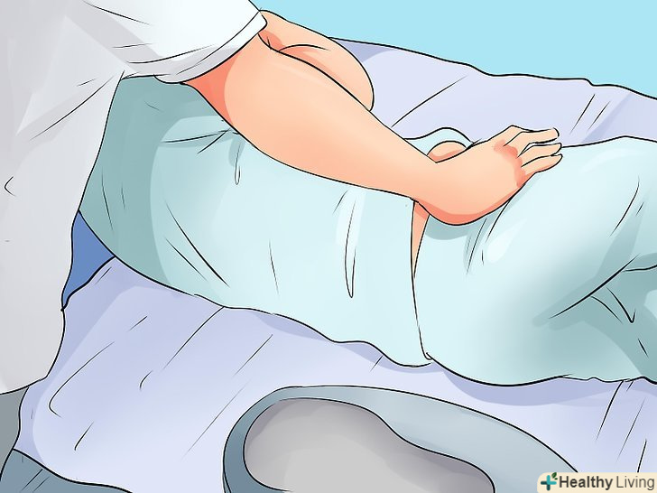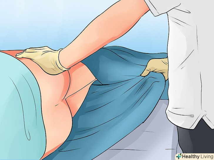Попросіть пацієнта оголити нижню частину тулуба. після всіх приготувань попросіть пацієнта зрушити одяг з нижньої половини тулуба.- Допоможіть пацієнту, якщо він (вона) не може зробити це самостійно.
