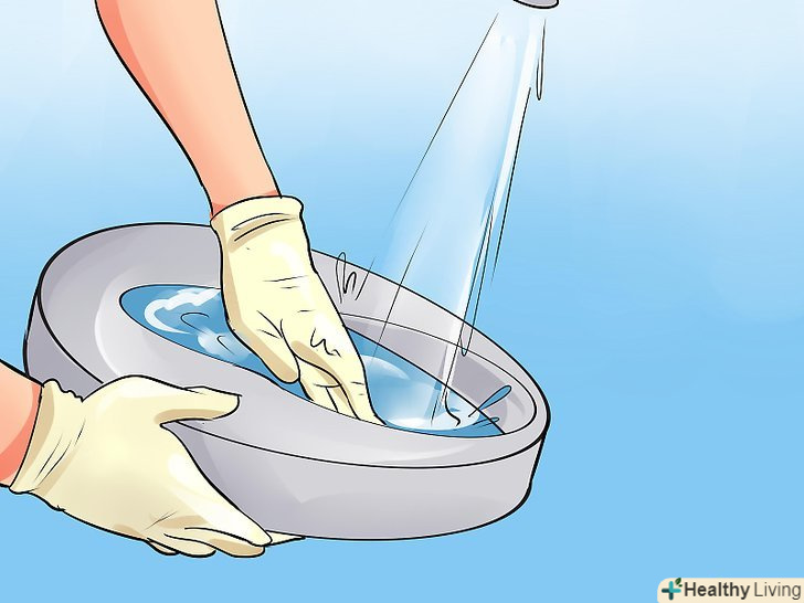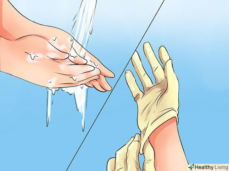 Помийте руки і надіньте рукавички. ретельно вимийте руки теплою водою з милом. Після цього висушіть їх і надіньте пару одноразових рукавичок.