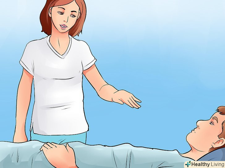 Попросіть пацієнта лягти на спину. йому (їй) слід лягти на спину. Необхідно зігнути ноги в колінах, поставивши ступні на матрац.