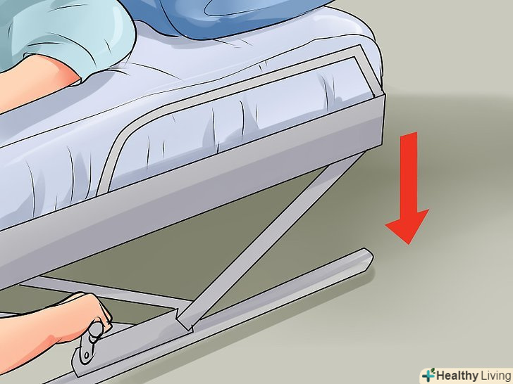 Опустіть лікарняне ліжко. максимально опустіть ліжко, щоб зменшити ризик травмування пацієнта в тому випадку, якщо він (вона) раптом впаде з ліжка при проведенні процедури.- Слід також опустити узголів'я ліжка, оскільки це полегшить рухи пацієнта.