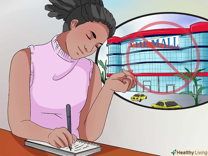 Складіть список місць, де вам не слід бувати. Запишіть всі місця, здатні спровокувати зрив. Швидше за все, це будуть великі торгові центри, певні магазини або великі торгові ряди. Ваші особисті правила повинні бути чіткими і зрозумілими, щоб ви не могли переконати себе в тому, що ви можете заглянути куди-небудь хоча б ненадовго. Складіть повний список таких місць і не ходіть туди до тих пір, поки тяга до покупок не ослабне. Пройдіться по списку тригерів, щоб переконатися в тому, що ви перерахували всі "небезпечні" місця і ситуації.[11]- Можливо, вам не вдасться завжди уникати цих місць, і це об'єктивно може бути дуже складно зробити через велику кількість реклами і доступності товарів.[12]