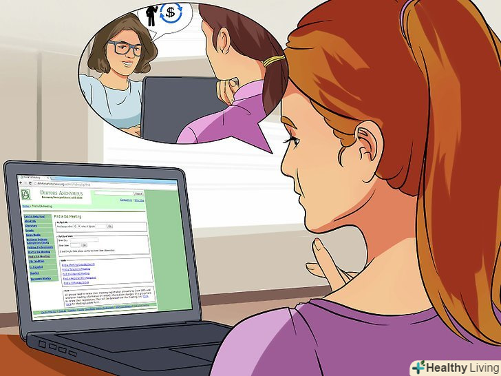 Запишіться в ТОВАРИСТВО анонімних шопоголіків.існують спеціальні групи для роботи з залежністю від покупок. Можливість поділитися своїми почуттями і дати іншим поради, які допомогли вам, може підтримати вас в моменти, коли ви будете готові зірватися.[20]- Пошукайте такі програми в своєму місті.