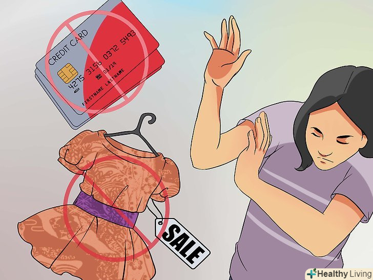 Відмовтеся від зайвих покупок повністю.якщо у вас серйозна залежність від шопінгу, обмежуйтеся тільки найнеобхіднішим. Будьте обережні при виборі магазинів і беріть з собою список покупок. Не купуйте речі на розпродажах і дешеві речі, які вам не потрібні, і виділяйте певну кількість грошей для одного походу в магазин. Чим більше буде чітких правил, тим краще. Наприклад, якщо вам потрібно купити продукти і предмети гігієни, складіть повний список всього, що вам потрібно, і не купуйте нічого за рамками цього списку.- Перестаньте платити кредитними картками і позбудьтеся від них. Якщо вам здається, що у вас повинна бути одна кредитна карта для безвихідних ситуацій, попросіть близької людини заховати її від вас. Зробити це вкрай важливо, оскільки люди схильні витрачати в два рази більше, коли у них є кредитна картка.[7]