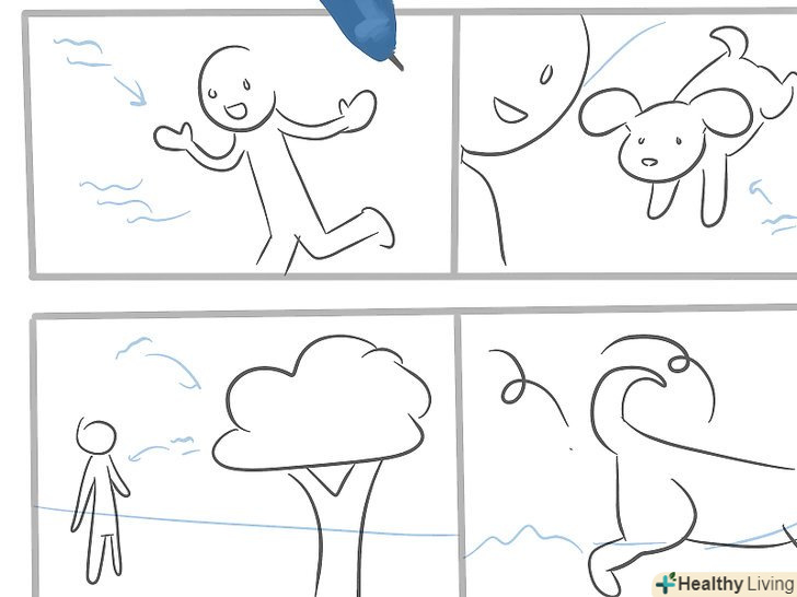 Зробіть розкадрування. це послідовність ескізів за сценарієм. Розкадровка показує, що відбувається в кожній сцені, але не дуже докладно. Вона повинна показати Місце зйомки, позиції акторів, що вони роблять. Якщо малювання не ваш коник, не переживайте. Ви можете зробити хороший фільм і без цього.