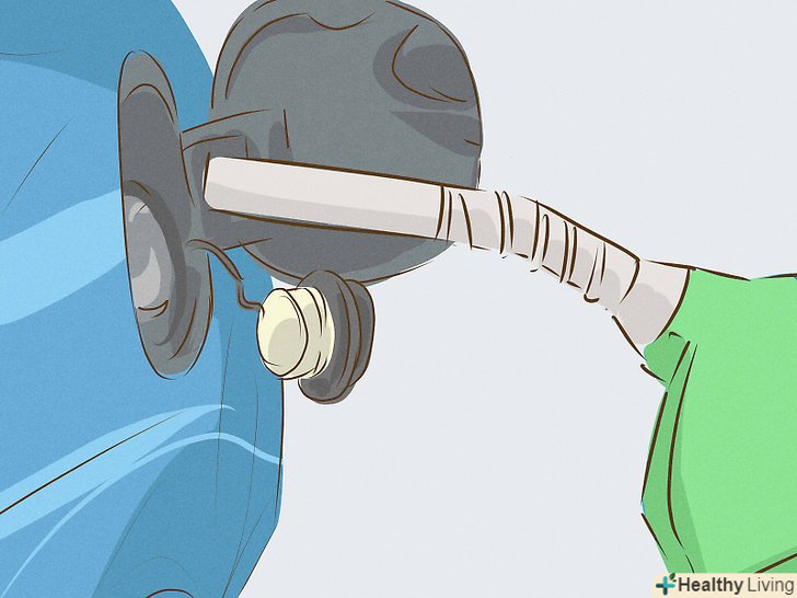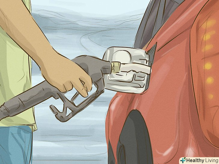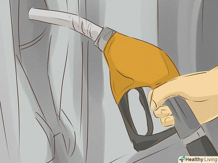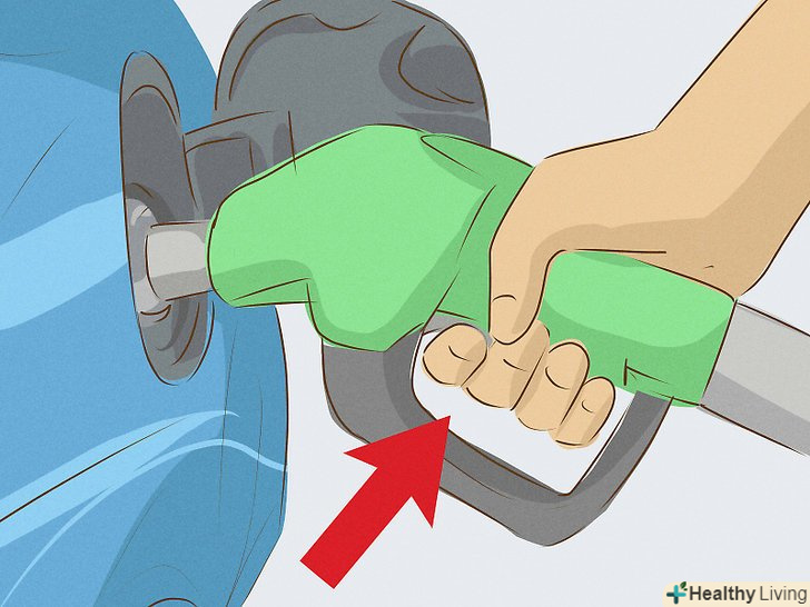 Затисніть ручку пістолета, і паливо почне надходити в бензобак.щоб не тримати пістолет рукою, намацайте спеціальну лапку у верхній частині ручки, опустіть і затисніть її. Натискайте на ручку тільки тоді, коли пістолет вже знаходиться в горлі бензобака!- На всіх сучасних заправках в колонках є механізм, який автоматично припиняє подачу палива, коли бак заповнюється до кінця або коли лічильник доходить до оплаченої вами суми. Коли заправка припиниться, ви почуєте клацання.