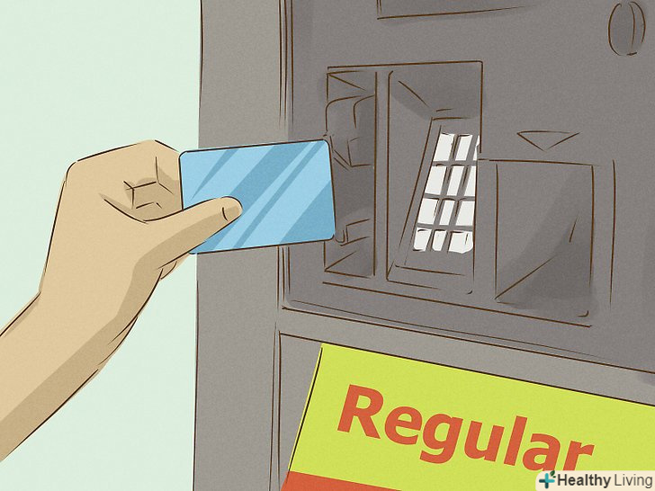 Виберіть спосіб оплати і заплатите за паливо.найчастіше необхідно оплатити паливо до заправки, але якщо вам потрібно залити повний бак, співробітники деяких заправок дозволяють спочатку заправитися, а потім заплатити. На деяких заправках передбачені термінали самообслуговування, які приймають карти і готівкові гроші.- Оплата в терміналі: вставте банківську карту і дотримуйтесь інструкцій на екрані. Вам буде потрібно вибрати тип карти, ввести пін-код і суму. Колонка заллє то кількість палива, яке відповідає оплаті, тобто якщо ви вкажете тисячу рублів, ви отримаєте стільки літрів палива, скільки можна купити на тисячу.
