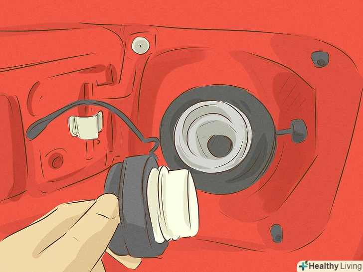 Відкрутіть кришку бензобака.щоб дістатися до кришки, вам знадобиться відкрити дверцята. Деякі кришки закриваються на ключ, але іноді потрібно натиснути на кнопку або просто повернути кришку. Покладіть відкручену кришку в безпечне місце, а якщо вона закріплена на провід, залиште її звисати вниз.