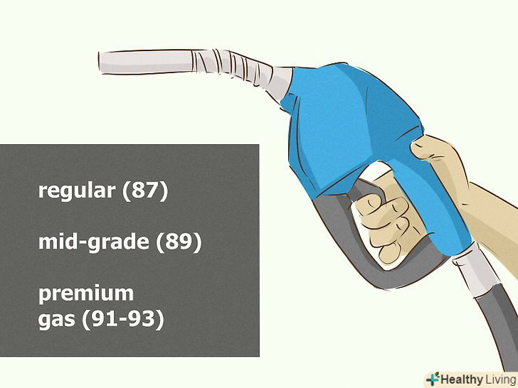 Виберіть потрібний вид палива.як правило, якщо на заправці є бензин, він буде представлений АІ-92 і АІ-95, але нерідко зустрічається і АІ-98 і АІ-80. Іноді заправки також пропонують преміальні види бензину (наприклад, "Преміум-Спорт" на заправках "траса" або "Фора" у "Роснефти"). Вид бензину визначається октановим числом (чим більше цифра, тим більше октанове число і тим стійкіше бензин до детонації). Щоб з'ясувати, який бензин вам підходить, зверніться до керівництва користувача своєї машини.- Октанове число означає кількість бензину, яке може бути стиснуто при компресії до моменту запалювання газу. Бензин з малим октановим числом загориться раніше, з великим - пізніше. Високооктанове паливо зазвичай використовується в потужних двигунах для підвищення производительсности двигуна і уникнення зайвого шуму від детонації, проте більшості машин таке паливо не потрібно.[1]
