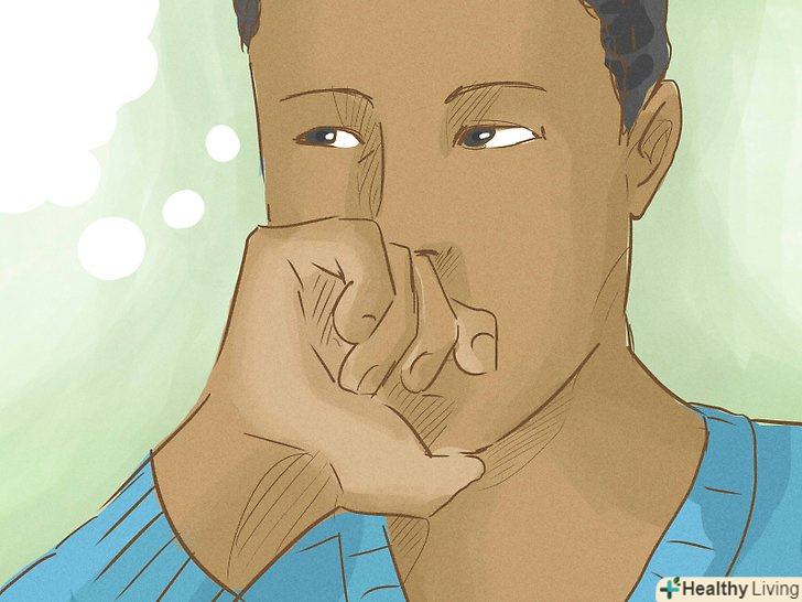 Дихайте глибоко.глибоке дихання - це дієвий спосіб контролювати рівень тривожності. Його можна використовувати практично скрізь і навіть під час дзвінка, просто намагайтеся не дихати прямо в трубку. Телефон можна відсунути від рота, щоб зробити кілька глибоких вдихів, або заглушити мікрофон на час, поки співрозмовник говорить.[10]- При глибокому диханні потрібно вдихати повітря через ніс за певний час (спробуйте рахувати до чотирьох). Після цього затримайте дихання на сім секунд. Нарешті, видихайте через рот протягом восьми секунд. Повторюйте всі дії кілька хвилин, поки не відчуєте прилив спокою.