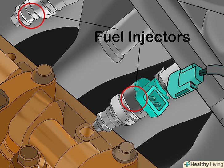 Перегляньте креслення двигуна.Почитайте Керівництво по експлуатації автомобіля, щоб визначити, де розташовані паливні форсунки. Визначте також положення паливного насоса і його компонентів.