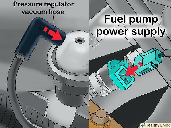 Вимкніть паливний насос від форсунок.Підключіть лінію повернення палива або вставте П-подібну трубку таким чином, щоб паливо поверталося в бак, поки ви будете очищати форсунки.- Дотримуйтесь інструкцій в керівництві по експлуатації вашого автомобіля, якщо ви не впевнені, як від'єднати паливний насос, підключити лінію повернення палива або вставити П-подібну трубку.