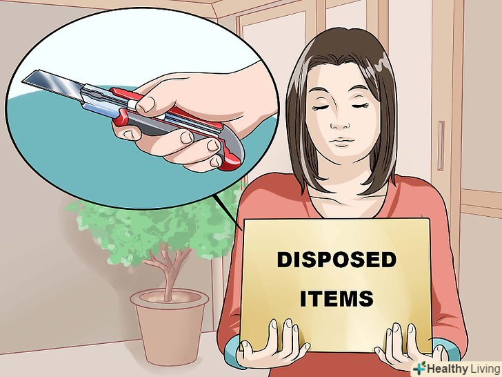 Позбудьтеся від небезпечних предметів.якщо потенційно небезпечні предмети будуть під рукою, Вам буде складніше боротися з думками про суїцид.- Викиньте леза і сховайте зброю.[4]