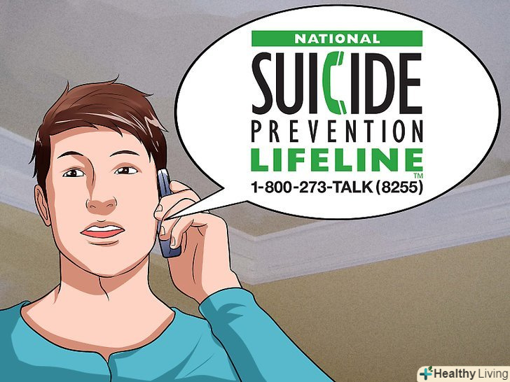 Зверніться за допомогою.самотність і почуття відстороненості можуть викликати думки про суїцид.[5] Зв'язки з іншими людьми допоможуть вам позбавитися від думок про самогубство і не перейти до дій.[6]- Спочатку вирішите, кому ви можете зателефонувати: родичам, друзям, лікарям (психіатру або психотерапевту), в швидку допомогу, на лінію психологічної допомоги. Потім візьміть цей список і почніть дзвонити людям по порядку. Спочатку краще зателефонувати близьким родичам і друзям або лікаря (якщо ви перебуваєте в безпечному місці і не плануєте здійснювати ніяких дій).