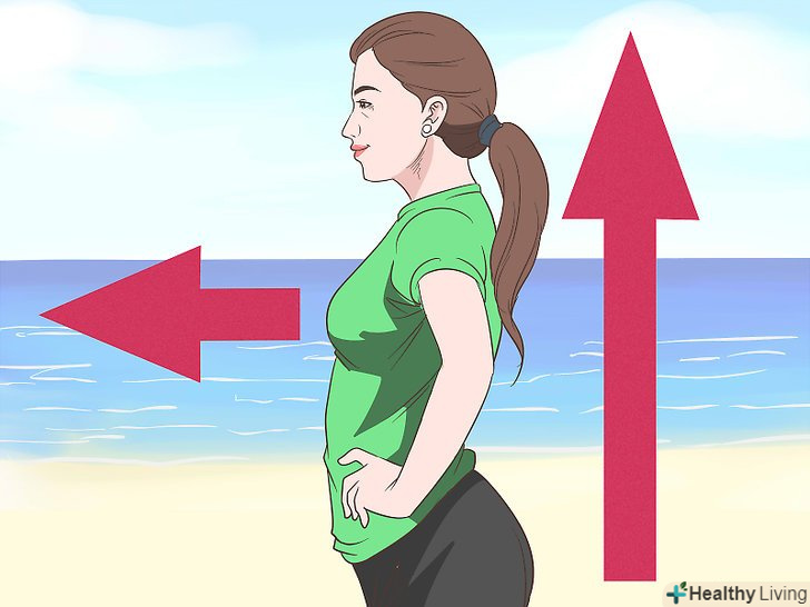 Розправте поставу.якщо ви відчуваєте себе маленьким (ой) і не хочете дивитися на себе в дзеркало, спробуйте розправити поставу. Дослідження показують, що вставши і розправивши плечі хоча б на 2 хвилини, ви відчуєте себе більш впевнено і впливово.[11]- Щоб розправити поставу, злегка відхиліть голову назад, розведіть руки або покладіть їх на стегна, розпряміть ноги і/або вип'ятіть вперед груди.