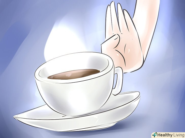 Уникайте споживання кофеїну. Кофеїн може сприяти перериванню сну. Він також може стати причиною нервозності, тривожності, тремтіння і зневоднення. Якщо у вас часто трапляються перепади настрою, припиніть вживати кофеїн і подивіться, чи допоможе це. Це може бути однією з причин, що тягнуть вас на дно.[7]- Ефект від кофеїну зазвичай відчувається вже через 5-10 хвилин і триває від одного до п'яти годин. Однак наслідок ефекту може розтягнутися до 24 годин.[8]