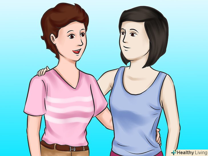 Поговоріть з ким-небудь.часом нам хочеться побути на самоті і закритися від усіх людей, і це нормально. Але так само важливо проводити час в колі друзів. Можливо, у вас є подруга, з якою ви можете поділитися всім. Поговоріть з нею і розкажіть про свої почуття. Зверніться до дорослої людини, якій довіряєте, наприклад, одному з батьків, шкільного психолога або тренеру. [14]- Поговоріть з кращою подругою або привітайтеся з хлопчиком, який вам подобається.