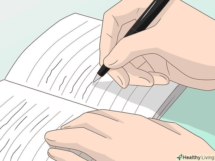 Запишіть свої почуття.виливаючи свої почуття на папері, Ви допомагаєте собі позбутися стресу і зрозуміти, що відбувається всередині вас. Часто люди заплутуються в своїх почуттях. Записавши їх, ви зможете вирішити свою проблему або проблеми.- Незважаючи на те, що корисно записувати хвилюючі вас почуття, не перетворюйте свій щоденник в збірник негативу. Записуйте також і приємні моменти, щоб встати на шлях позитивного мислення.[20]