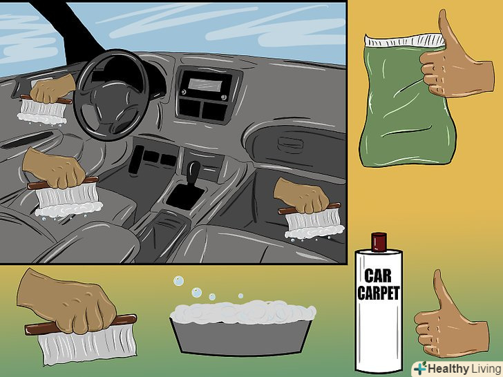 Виберіть засіб для чищення килимів і знайдіть хорошу щітку на ринку великий вибір усіляких засобів для чищення килимів і навіть є спеціальні засоби для автомобільних килимків, але всі вони досить схожі. неважливо, який продукт ви використовуєте, метод один і той же. Для цього підходить навіть пральний порошок! Пошукайте щітку з м'якою щетиною, яка допоможе втерти миючий засіб в тканинну поверхню килимка.