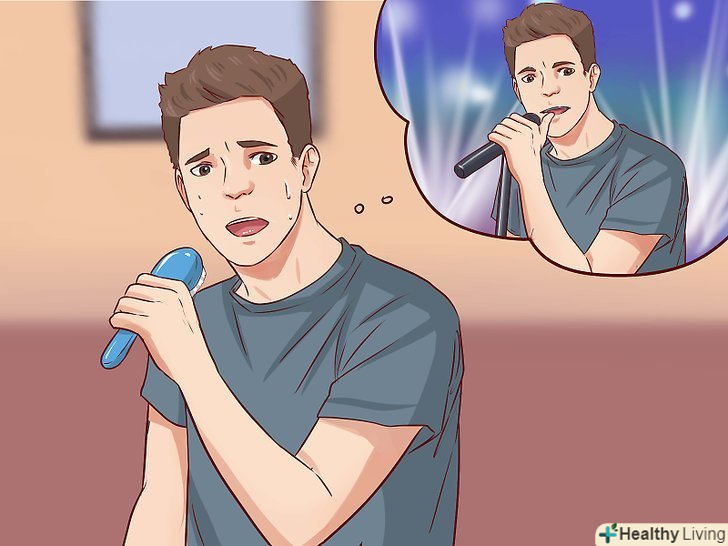 Використовуйте методи візуалізації.уявляйте, що ви не тільки успішно справляєтеся із завданням, але ваш успіх стає оглушливим. Відчуйте цілеспрямованість і впевненість, зосередьтеся на найменших деталях того, що відбувається. Прокрутіть в розумі всю послідовність подій і відчуйте задоволення після успішно виконаного завдання. такий метод часто використовується спортсменами і довів свою ефективність вже в процесі змагань.[5]- Наприклад, якщо ви хвилюєтеся перед розмовою з людиною, яка вам симпатичний, уявіть, як ви починаєте веселу і захоплюючу бесіду, в якій всі посміхаються, а людина бачить вас в абсолютно новому світлі.