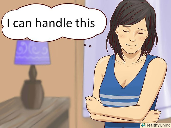 Замініть хвилюючі думки позитивними судженнями. Хвилювання — це викид адреналіну, виробництво енергії. У хвилини хвилювання наш мозок зайнятий осмисленням безлічі ідей, які відповідають підвищеної напруженості наших почуттів на кшталт: «Я не впораюся», — або: «я точно не підходжу для цього».[4] вгамувати потік думок не завжди можливо, зате можливо замінити їх позитивними судженнями-ствердними описами власних здібностей від першої особи. Розгляньте приклади таких тверджень, які дозволять вам спростувати і вгамувати негативні думки:- "Я найкращий кандидат на цю посаду";