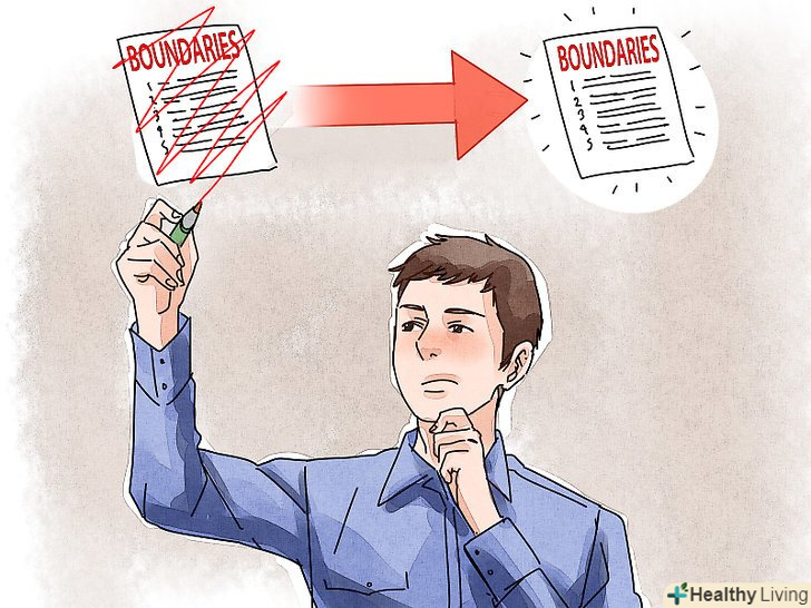 Проявляйте гнучкість.встановлювати і дотримуватися кордону необхідно регулярно, а не тільки один раз. Це постійний процес. Не соромтеся змінити межі, якщо вони не ефективні. Повідомляйте про всі зміни своєму близькій людині, щоб ваші очікування від відносин не були загадкою.[12]