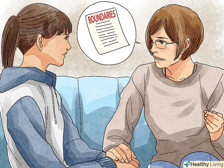 Ясно і твердо повідомте свої межі.Говоріть з близькою людиною прямо і відкрито. Будьте ласкаві, але не вибачайтеся і не йдіть на зворотну. Чітко і однозначно поясніть, чого ви чекаєте від близької людини.[6]- Говоріть спокійним і мирним тоном, щоб знизити ризик образи.