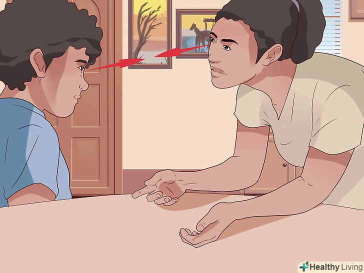 Зачекайте, поки дитина не зверне на вас увагу.не починайте говорити до тих пір, поки дитина не подивиться на вас.[5] якщо вам не вдалося відразу привернути до себе увагу дитини, повторіть свої слова ще раз.- Зачекайте або попросіть дитину подивитися на вас, перш ніж ви почнете говорити йому про щось.