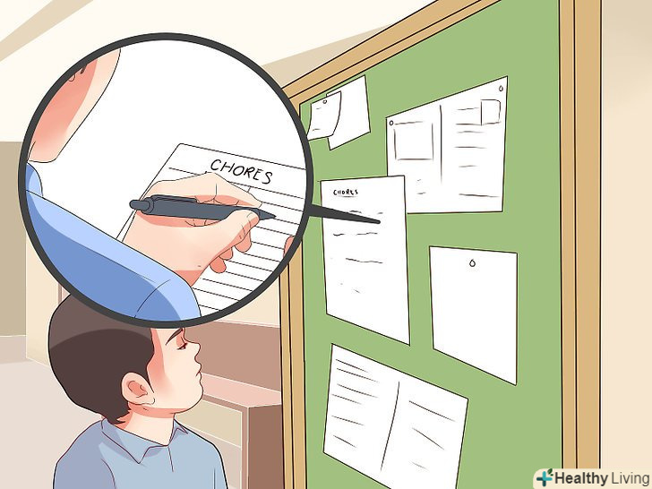 Користуйтеся нагадуваннями.існують різні способи нагадати дитині з СДУГ про те, що йому необхідно виконати. Особливо корисними будуть Візуальні нагадування.[15]- Для підтримки порядку в кімнаті ви можете використовувати систему колірного кодування, наприклад різнокольорові ящики або полиці. Наклейки з написами і малюнками також допоможуть дитині згадати, де слід зберігати ті чи інші предмети.[16][17]