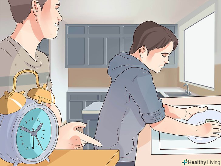 Допоможіть дитині планувати свій час.як правило, у дітей не дуже розвинене почуття часу. Це тим більше справедливо для дітей з СДУГ.[20] щоб допомогти дитині з СДУГ своєчасно справлятися зі справами, вказуйте необхідний час.- Наприклад, виставите кухонний таймер на певний час і скажіть дитині, що ви хотіли б, щоб завдання було виконано, до того як прозвучить сигнал таймера. Або включіть знайому дитині музику і скажіть йому, що бажано завершити роботу до її закінчення.