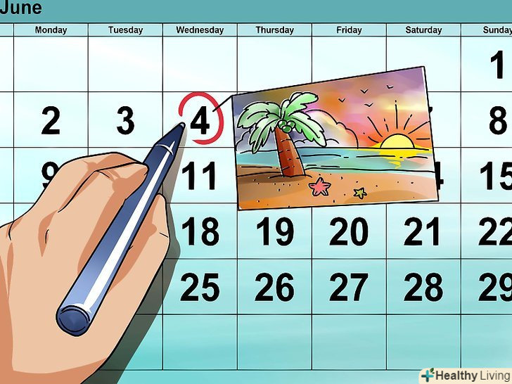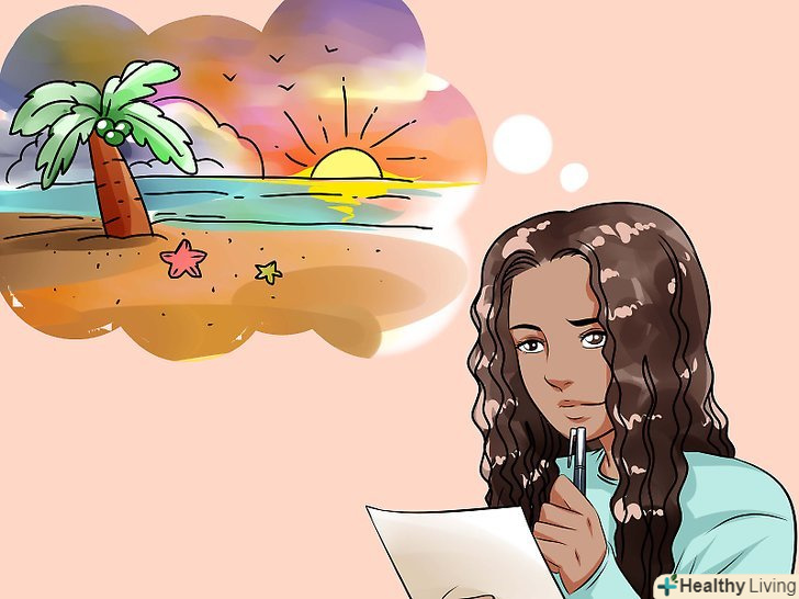 Будьте відкриті для пригод.виділіть час для веселих і розслаблюючих видів активності. Наявність чогось такого, чого ви будете з нетерпінням чекати, допоможе вам залишатися в гарному настрої.[34] Активний відпочинок допоможе вам розслабитися і навчитися контролювати рівень стресу.[35] Подумайте про те, щоб поекспериментувати з новими речами, підтримуючи відчуття чудесності навколишнього світу і пізнаючи його. Коли ви випробуєте нові речі, то більше дізнаєтеся про те, що вам подобається.- Спробуйте включити дихальні вправи в свою буденну рутину. Глибоке дихання покращує приплив кисню до мозку, знижує стрес і допомагає підтримувати концентрацію.[36] далі вказано порядок проведення простого вправи.