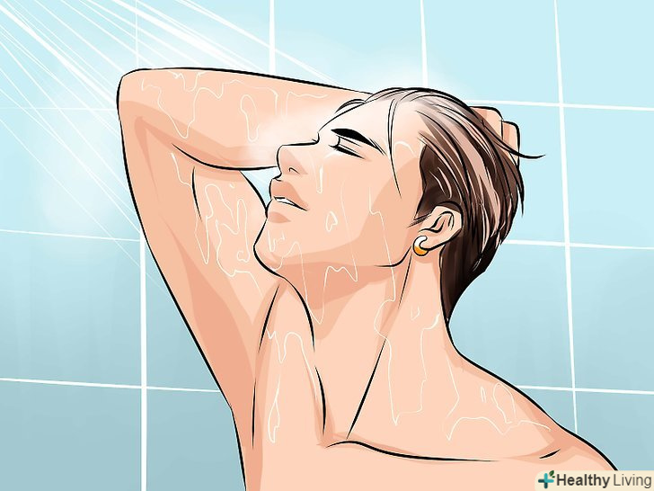 Прийміть довгий гарячий душ або ванну.пара також покращує кровообіг і знімає хворобливі відчуття в тілі.[9] Обов'язково ретельно вимийтеся, не забувши при цьому про волосся, проміжки між пальцями і пупок. Якщо у вас є особиста ванна кімната і вільний час, схиліться до тривалого прийому ванни, а не душа. Спробуйте додати в воду піну, ароматичні масла або бомбочки для ванни. Ставте власні експерименти по різному поєднанню цих продуктів, щоб індивідуально підібрати для себе відповідну спа-процедуру. Це стане ще одним джерелом задоволення.[10]- Не залишайтеся у ванні довше півгодини, інакше ваша шкіра почне зморщуватися від води.[11] якщо Ви користуєтеся спільною ванною кімнатою, то дайте іншим знати, що Ви займете її на деякий час.
