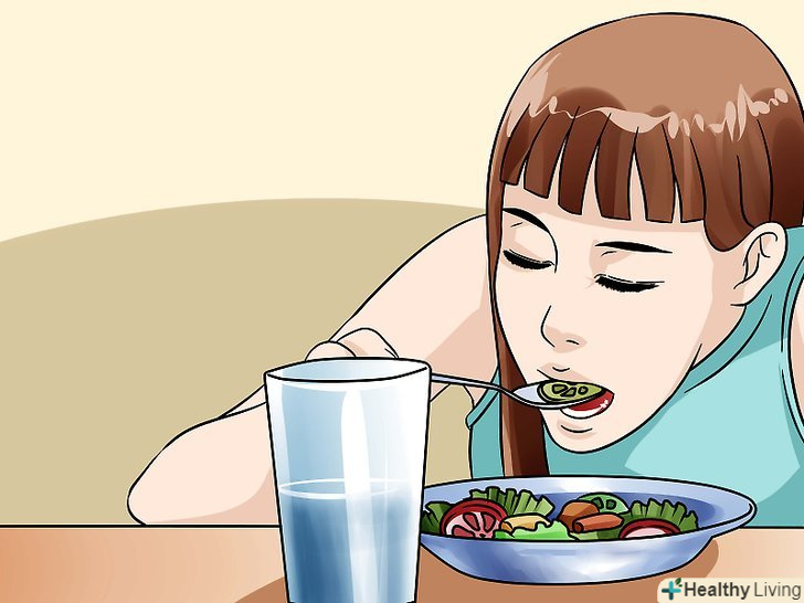 Виробіть звичку правильно харчуватися.Все більше і більше досліджень підтверджують те, що правильне харчування покращує здоров'я людини, його фізичний і психічний стан.[18] найкраще буде проконсультуватися з дієтологом для індивідуального підбору дієти. Правильне харчування має на увазі під собою те, що воно повинно бути збалансованим, не містити в собі занадто багато солодкого і мати контрольований розмір порцій, що вживаються у встановлений час дня.- Збалансована дієта повинна включати в себе деяку кількість білків (немолочного походження), велика кількість фруктів і овочів, трохи молока і кисломолочних продуктів, а також трохи жирної або солодкої їжі.[19] звичайно, при складанні дієти слід брати до уваги наявність у вас алергії або деяких проблем зі здоров'ям, наприклад, діабету.