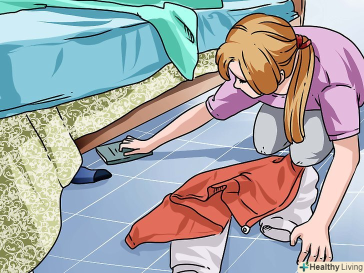 Наведіть порядок.тримайте свою кімнату в порядку і чистоті. Безлад у власній кімнаті буде надавати стійке негативний вплив на ваш настрій.[31] незважаючи на те, що деяким людям легше відчути натхнення в безладній обстановці, постарайтеся вкладатися спати і прокидатися в атмосфері порядку.[32]- Розробіть системуорганізації власних речей. Весь одяг повинен бути акуратно повішена або організовано складена в ящики. Поекспериментуйте із застосуванням роздільників для ящиків. Їх можна виготовити самостійно зі звичайного картону. Так ви зможете підвищити ефективність власного життя.[33]