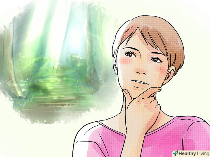 Візуалізуйте.це заспокійлива і розслаблююча техніка, яка допоможе вам контролювати емоції.[15] Візуалізація вимагає практики, але вона допоможе вам перетворити негативні думки в позитивні.[16]- Почніть з вибору "безпечного місця". Це може бути будь-яке тихе, безпечне і розслаблююче місце, яке ви можете собі уявити. Наприклад, пляж, спа-салон, гірська вершина.