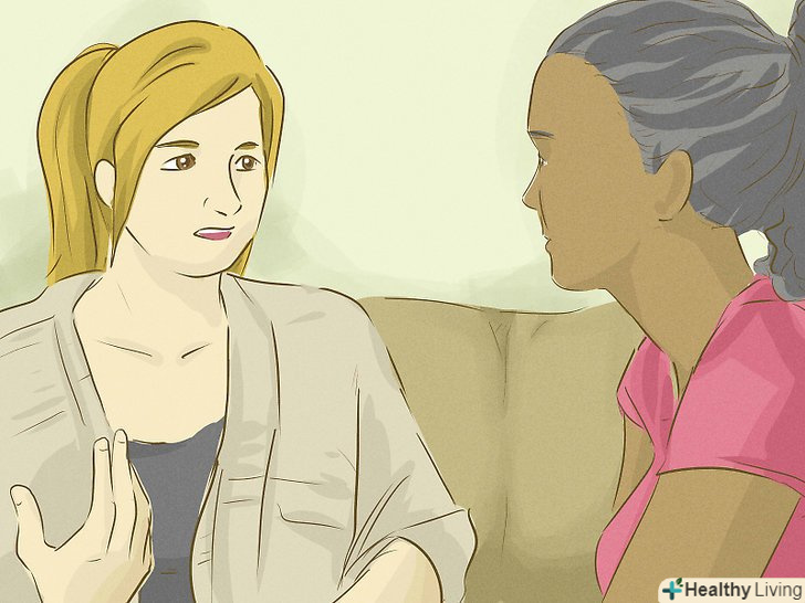 Довіртеся другу.[17] цей крок є не обов'язковим, але дуже бажаним. Переносити психічне захворювання на самоті-це дуже суворе випробування. Якщо ви зважилися зламати бар'єри і звернутися за допомогою, це означає, що ви більше не повинні страждати в тиші. Звертайтеся за підтримкою. Спробуйте знайти когось, хто зазвичай підтримує і не засуджує вас. Поділіться з цією людиною деякими деталями того випробування, через яке ви зараз проходите.- Майте на увазі, що якщо ми говоримо про свою психічну хворобу з іншими людьми, то це дає нам чудову можливість зменшити відкидання і брак інформації.[18] якщо зумієте відкритися іншим людям, то це допоможе вам подолати страх перед зверненням до лікаря.