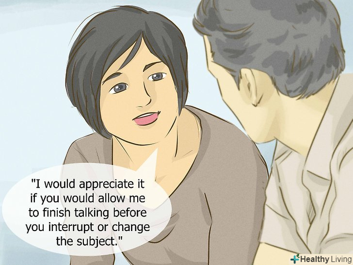 Навчіться володіти своїми бажаннями і потребами. Формулюйте свої фрази від першої особи. Це дозволяє висловлювати потреби так, щоб їх вираження викликало найменшу захисну реакцію У інших.[27]- Наприклад, не варто говорити: "ти ніколи мене не слухаєш!", краще сказати:"я була б рада, якби Ти дозволив мені висловитися до кінця, а не переривав мене і не міняв тему".