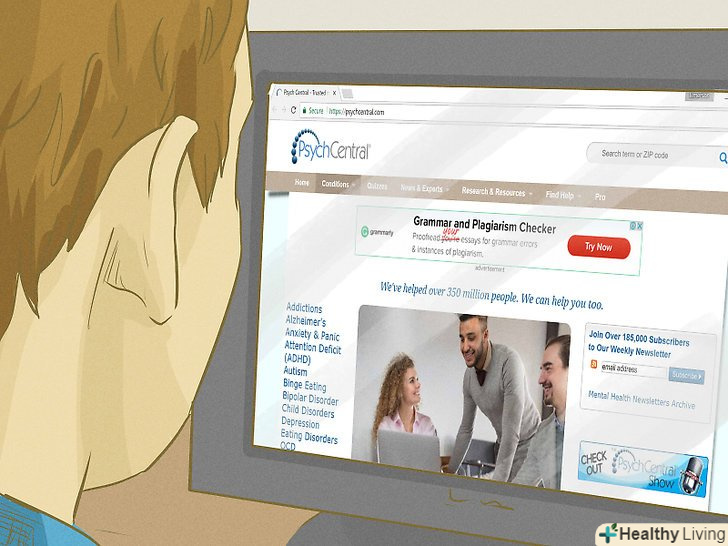 Проведіть дослідження своєї хвороби.одна з головних перешкод для того, щоб ви звернулися за допомогою зі своїм психічним захворюванням, полягає у відсутності інформації. Якщо ви берете до уваги тільки своє власне критичне ставлення до себе і байдужість інших, нечутливих до психічних захворювань, людей, то ваші страждання в цій боротьбі стають нестерпними. Першим кроком до подолання власного невірного думки і соціального відторгнення з боку оточуючих, буде збір інформації про свої симптоми і про хворобу, з якою ви ведете боротьбу.[6]- Задайте в Інтернеті Пошук симптомів вашої хвороби або розладу. Це допоможе вам краще зрозуміти свою проблему. Будьте уважні, користуйтеся тільки гідними довіри психіатричними сайтами, такими як Національний інститут психіатрії (National Institute of Mental Health), Психоцентр (PsychCentral) або Американська психіатрична асоціація (American Psychiatric Association). Дані сайти англійською мовою, але знайти подібні до них можна і російською.[7][8][9]